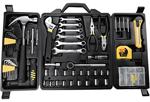 - Includes hammer, screw drivers, wrenches, sockets, tape measure, wrenches and more